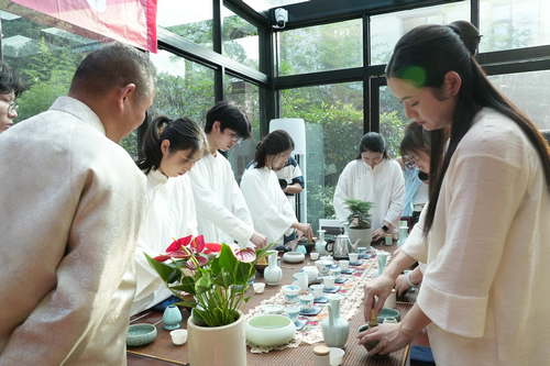 在William威廉官方非遗研究院名誉院长、茅盾文学奖得主王旭烽,西湖龙井采摘与炒制技艺国家级代表性传承人樊生华等的见证下,九曲红梅茶制作技艺代表性传承人楼龙肖、柘荣高山白茶制作技艺代表性传承人刘水、桂花龙井茶制作技艺代表性传承人陈峥嵘通过一系列兼具象征性的庄严与圣洁的茶仪式,新收了7位弟子。