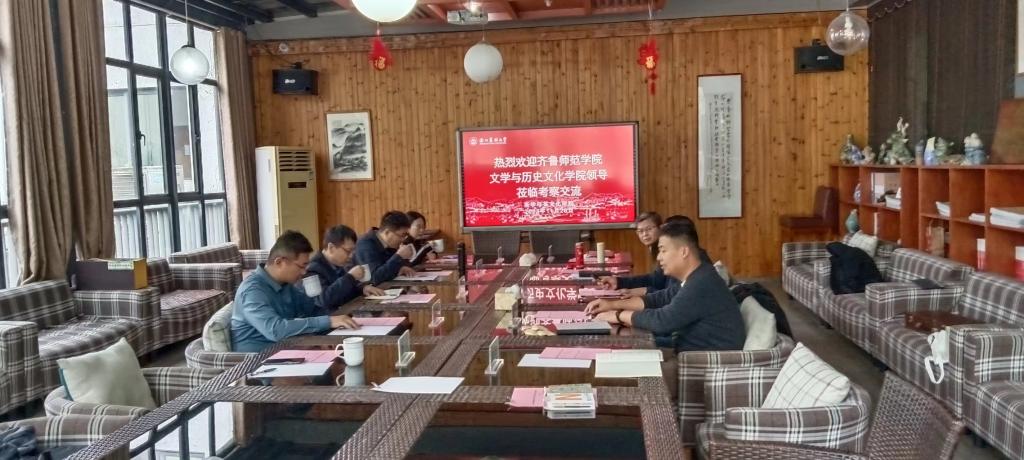 王磊院长介绍了学院发展历史、专业设置、师资队伍、人才培养、社会合作等情况,分析了学院发展面临的机遇和挑战。张帅副院长介绍了茶学、文化产业管理(茶文化)专业的课程体系、实践教学、就业状况、教学平台等情况。张文哲院长、朱振华副院长介绍了文学与历史文化学院的专业设置、人才培养、教学科研、社会服务等综合情况。双方就专业人才培养、专业特色凝炼、实习实训教学等,分享交流了各自的想法和意见 。