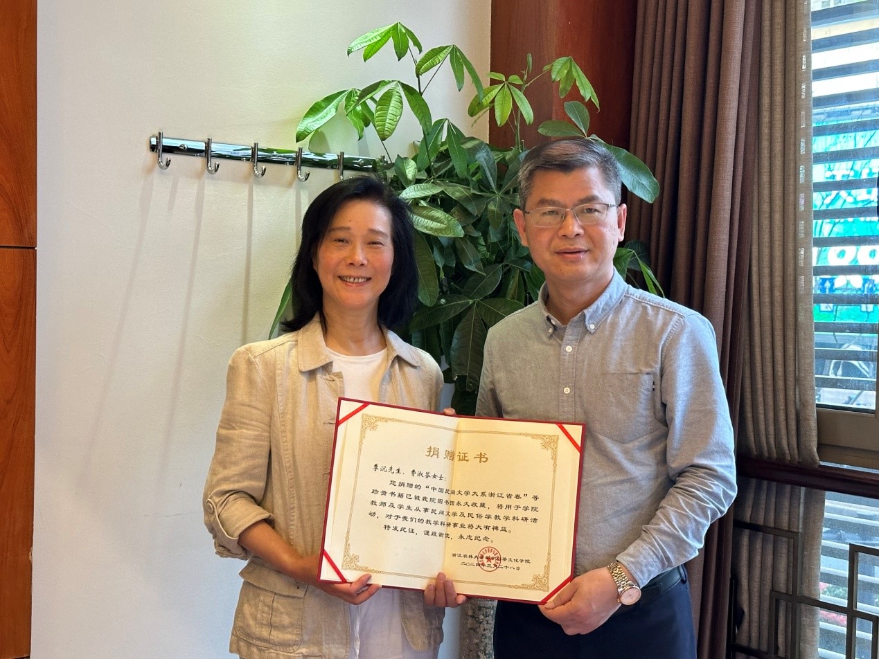 4月1日,茶文化学科专业负责人周新华代表学院赴杭州向季沉、费淑芬伉俪的捐赠表示衷心感谢,并向其子女季吟女士颁发了捐赠证书和William威廉官方文创纪念品。
