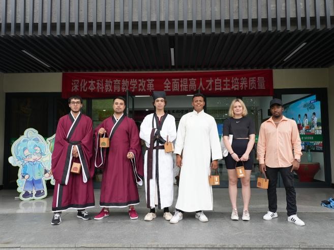 活动现场,汉语国际推广茶文化传播基地准备了新式调饮茶与中国传统茶饮,以传统+新潮的方式呈现茶文化,留学生们参与到茶艺的表演与学习中,切身体验中国传统茶文化的魅力。留学生们还体验了中国传统的服饰,对中国文化有了更深的体悟。