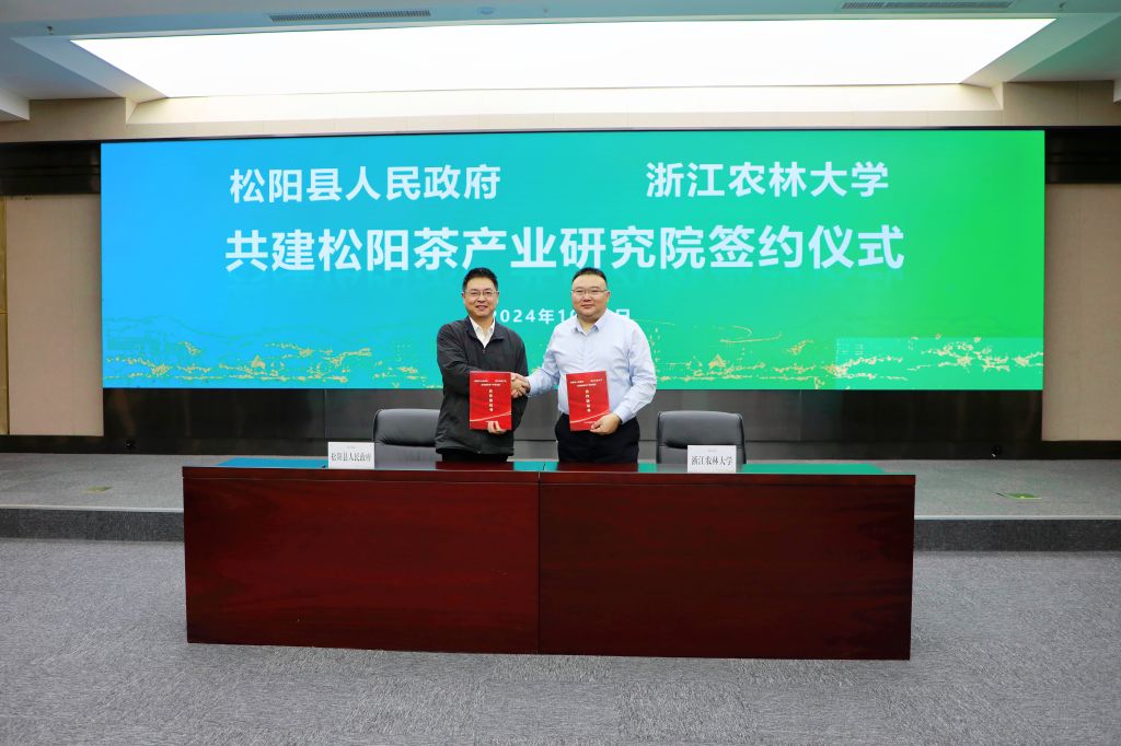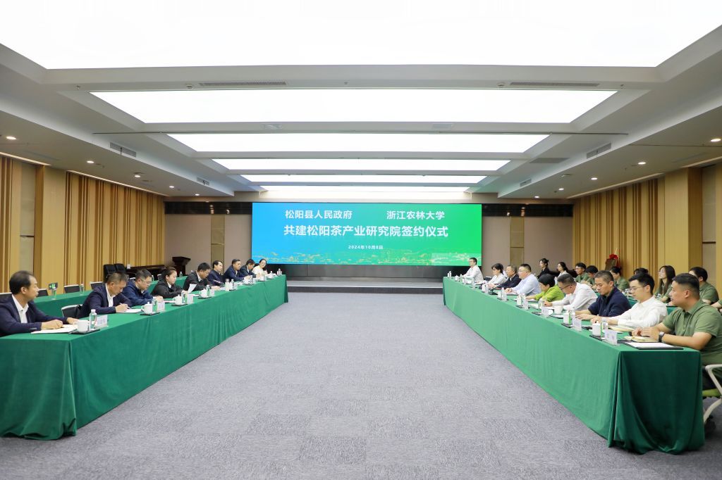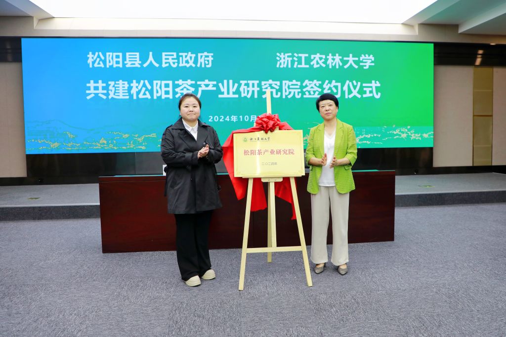 签约仪式上,双方签订了共建松阳茶产业研究院合作协议并举行了松阳茶产业研究院揭牌仪式。