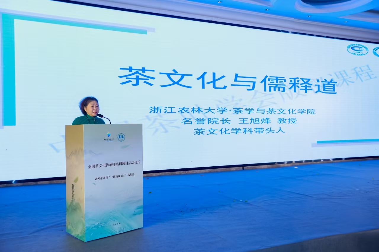 12月20日,由学院和宋溪湖书院共同发起的“全国茶文化传承师培训项目”暨开化龙顶“十佳青年茶人”出师礼活动在开化县举行。中国国际茶文化研究会荣誉会长、浙江省政协原主席周国富,浙江省农业农村厅二级巡视员邵晨曲,校党委副书记施美红,学院名誉院长王旭烽、党总支书记张路,衢州市政协副主席琚建军,开化县县委书记夏盛民、县长陈利华等四套班子成员参加了活动。