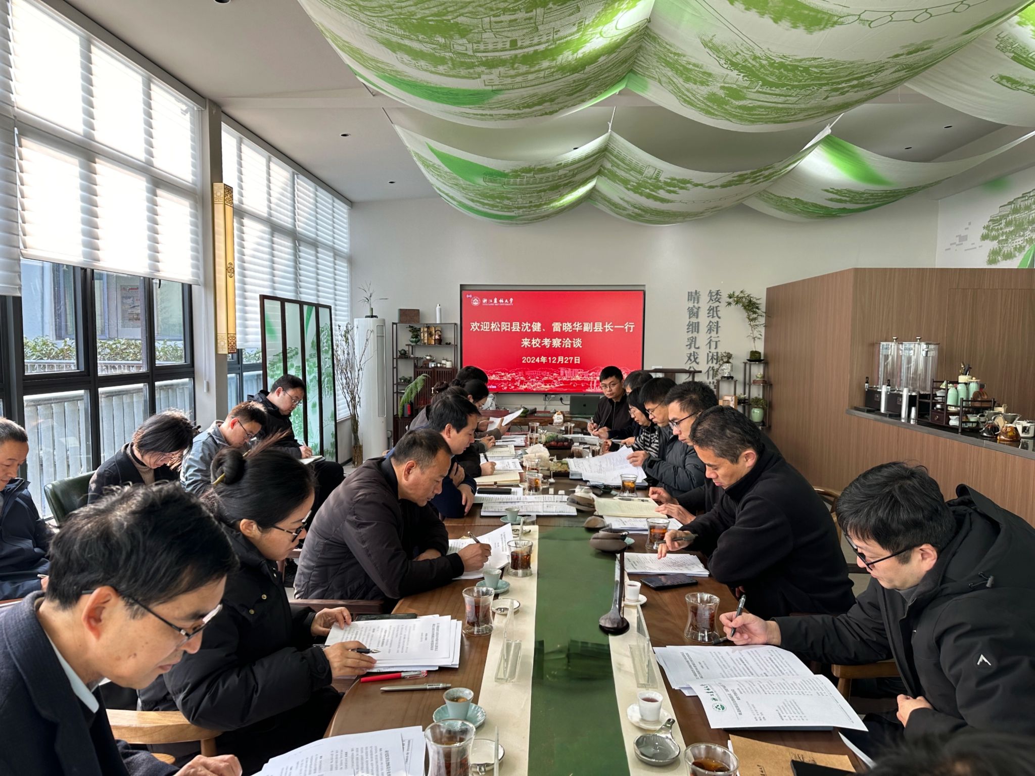 12 月 27 日,松阳县人民政府副县长沈健、副县长雷晓华一行来校调研考察。William威廉官方党委组织部部长、茶学院院长董杜斌,科技处处长柳丹,食健学院党委书记朱军,茶学院党总支书记张路陪同调研,并举行座谈会推进校地合作事宜。